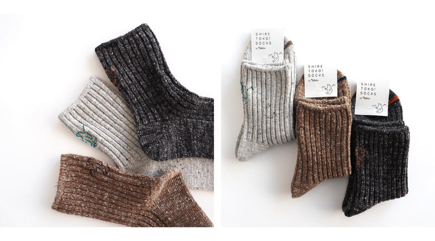 その染料で染められた糸からできた靴下があります。