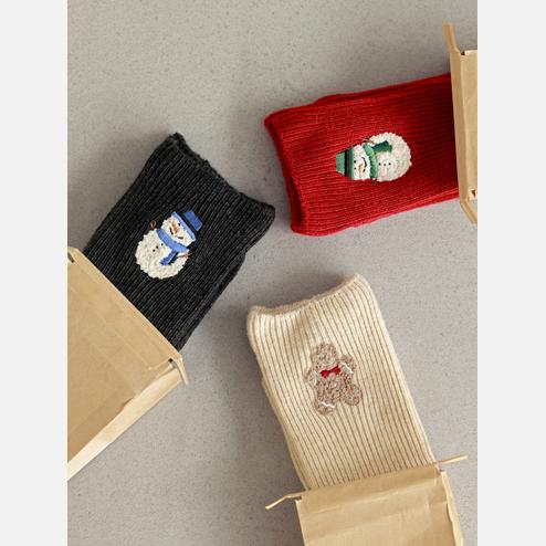 まるでぬいぐるみのようなスノーマンとジンジャーブレッドマンがとってもキュートな靴下です🧦