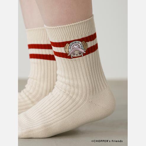 ローゲージの2本ラインソックスに可愛いチョッパーの刺繍が入ったアイテム。