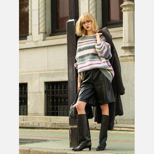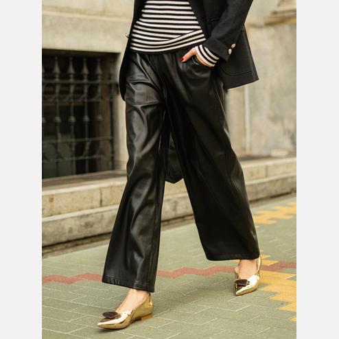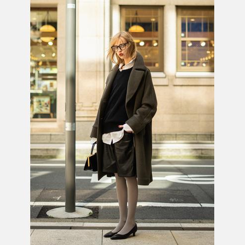 ☑︎柔らかくしなやかなフェイクレザー素材で、リアルレザーのような見た目ながら軽やかな着用感。
