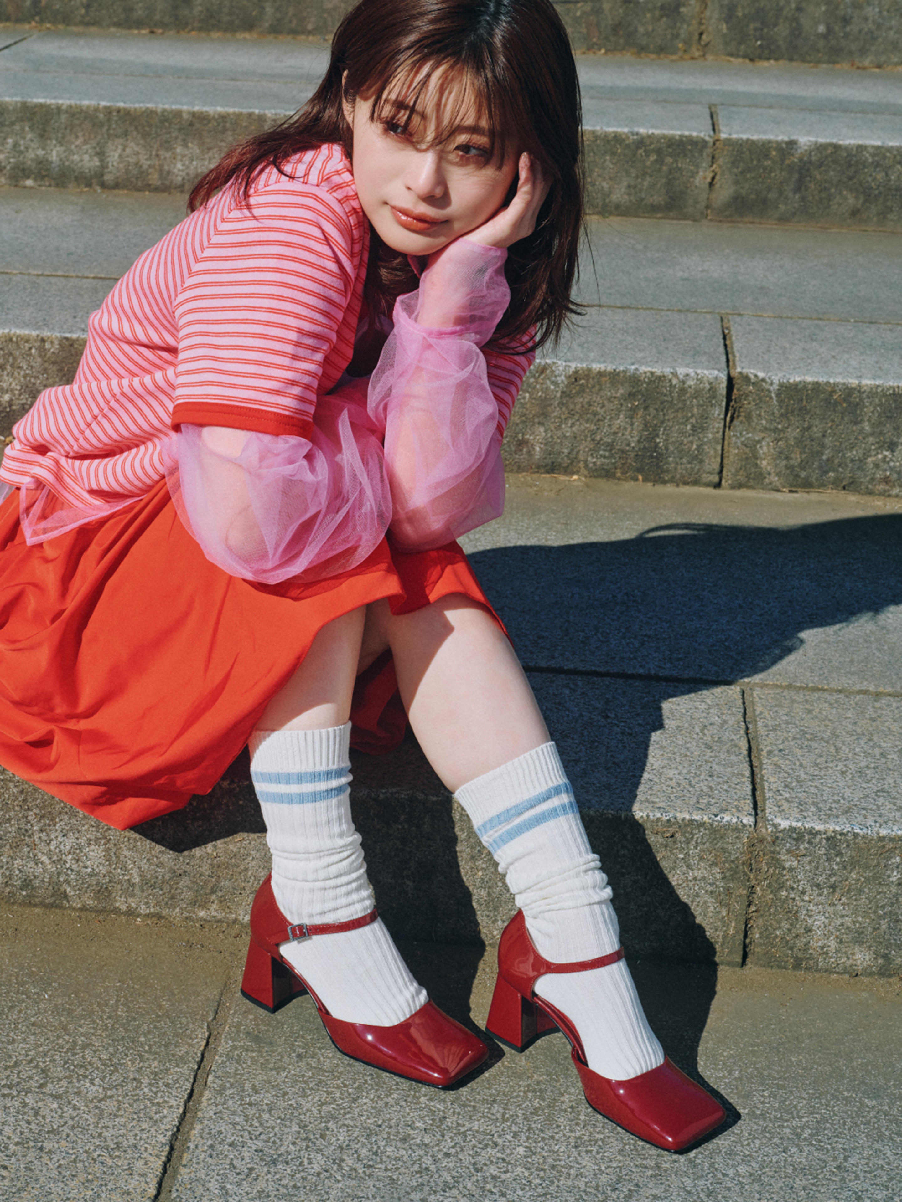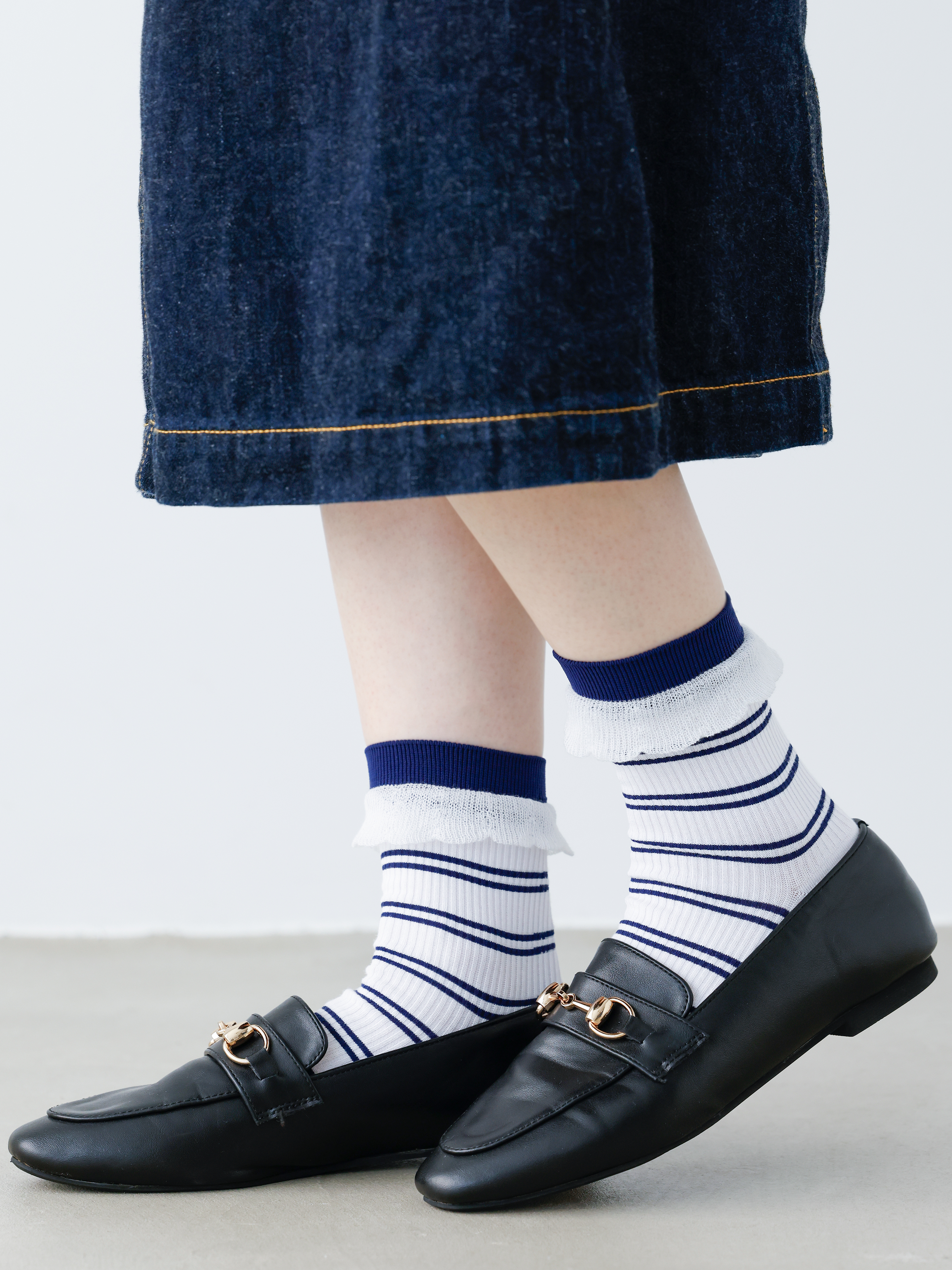 リンゴ刺繍が可愛い靴下です🍎🤍