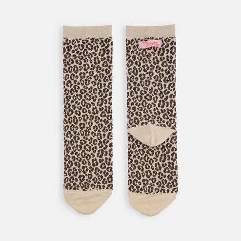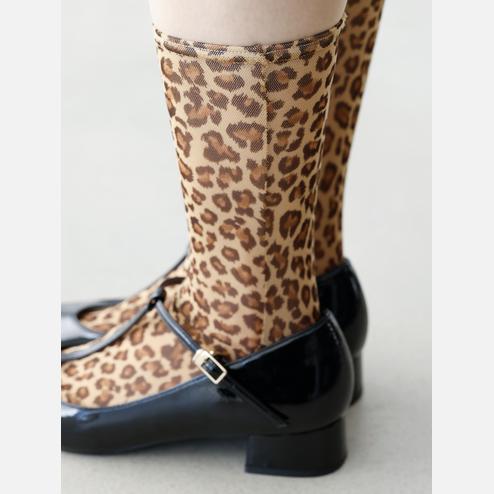薄手の綿混素材にレオパード柄を入れた長め丈のソックス。