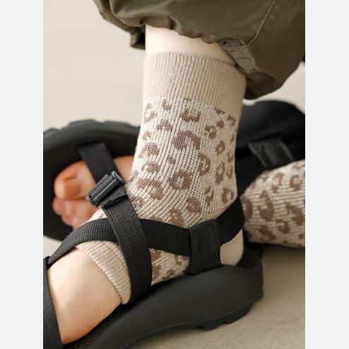 薄手の綿混素材にレオパード柄を入れた長め丈のソックス🐆♡