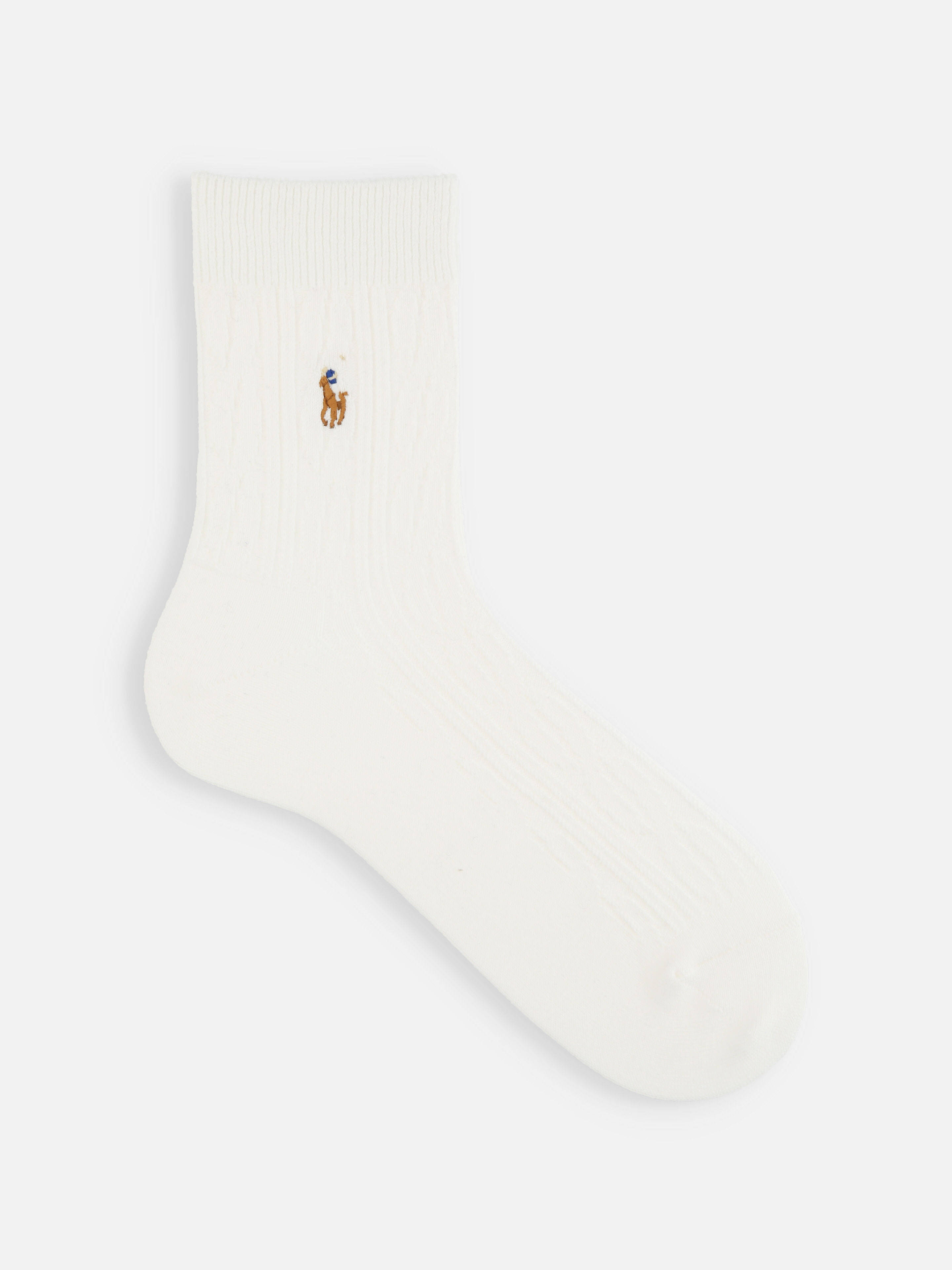 立体的なケーブルとポロポニー刺繍が可愛いソックス🧦🤍