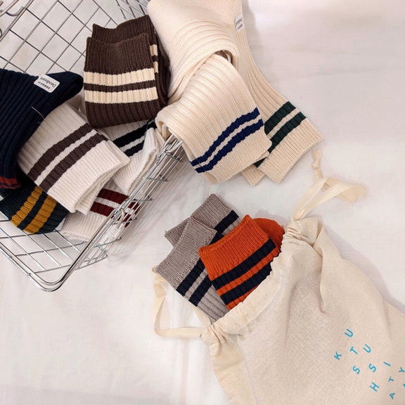 ワンマイルウェアにぴったりなライン ソックスを主役に。小物で温かみと 心地良さをイメージしました。