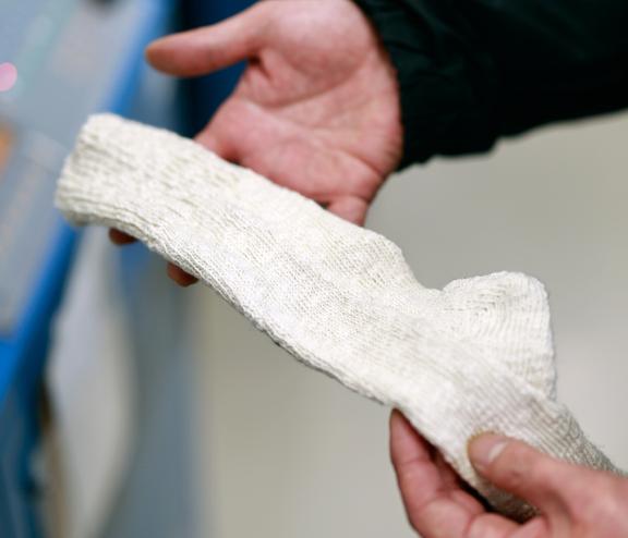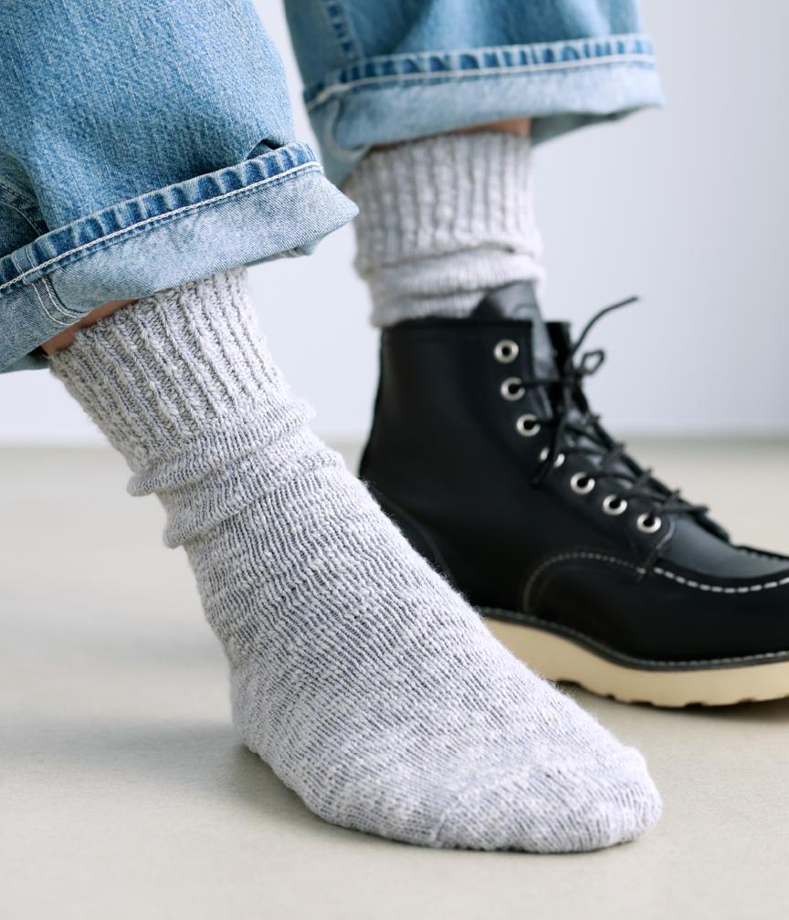 太番手スラブ糸の、ざっくりと豊かな表情。