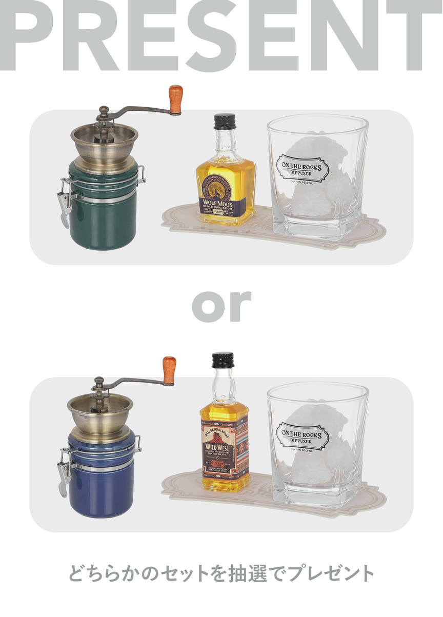 ウイスキーのミニチュアボトルとロックグラスを模した大人の遊び心たっぷりなディフューザーセット。氷に見立てた天然石を付属のグラスに入れて、ウイスキーを注ぐように数滴オイルを垂らして香りをお愉しみください。香りの種類によってミニチュアボトルの形状とラベルがひとつひとつ異なるコレクタブルなデザインも魅力です。ボトルとグラスを並べて置けるコースターも付属していて、お部屋に置いた時もサマになります。ギフトにぴったりな高級感のあるパッケージが付きます。