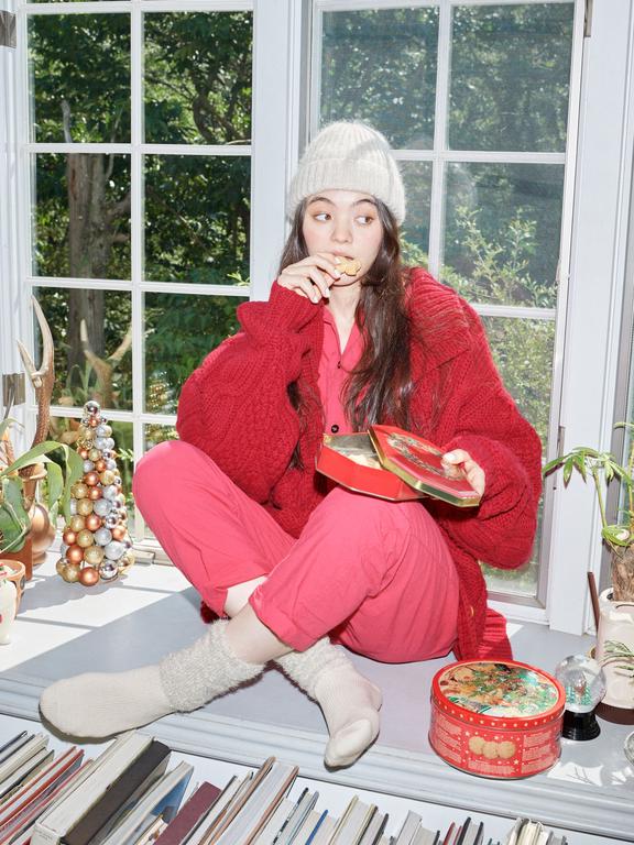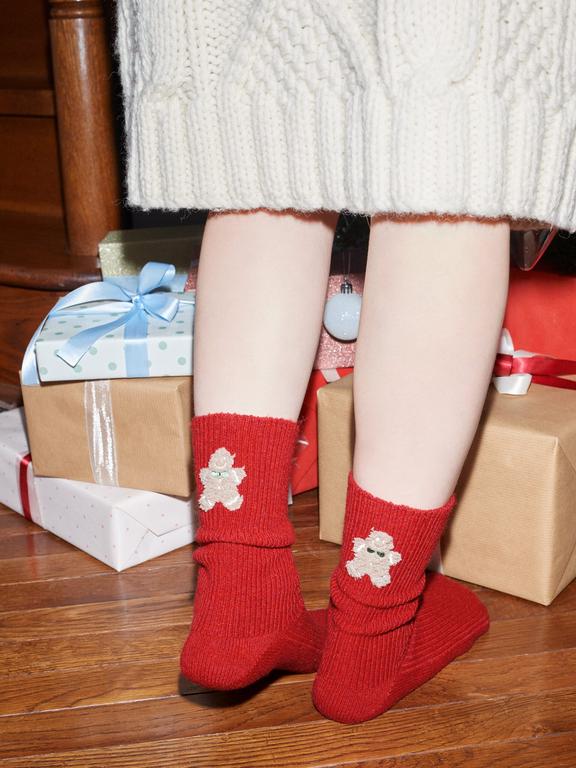 ジンジャーブレッドマンを 背面に刺繍した一足は、 クリスマス限定。 カシミヤウールで保温性も抜群。